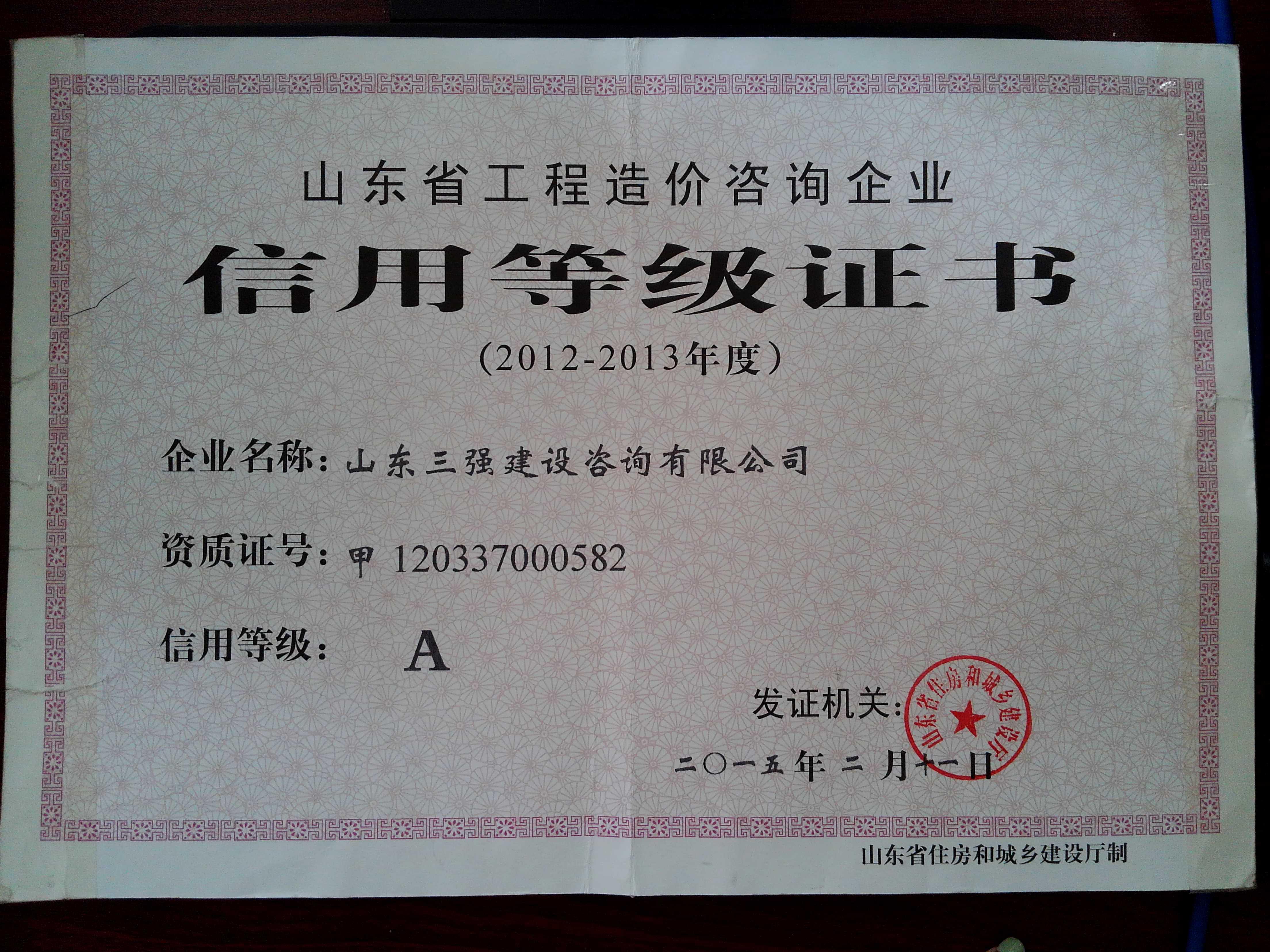 2012-2013年度全省“工程造价咨询企业信用等级A级”(*********)资格